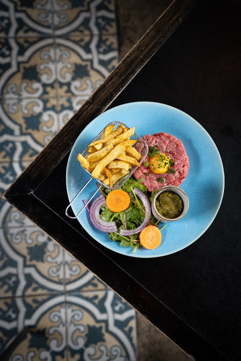 Pièce de 180g - Fumaison maison, marinade au pesto, frites, salade et sauce du moment