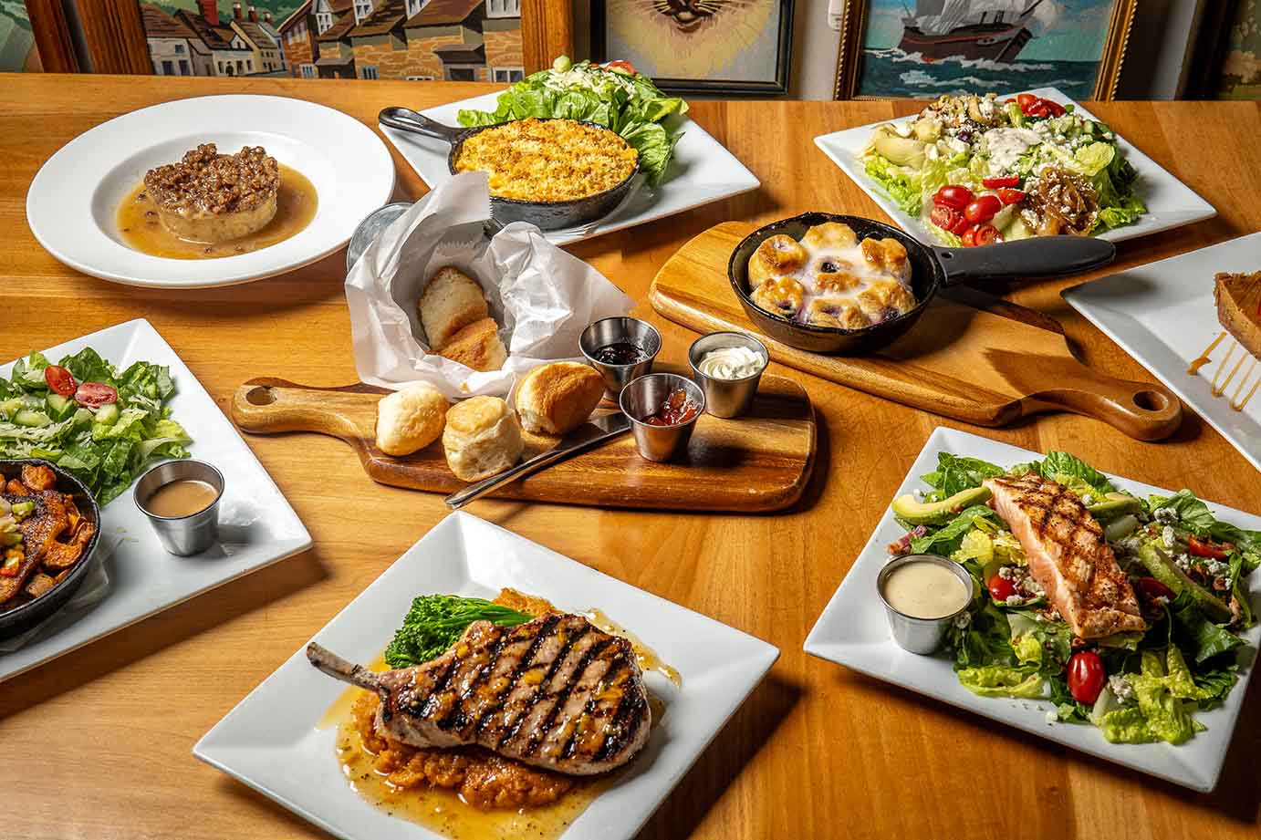 Buttermilk whipped potatoes, bacon braised green beans, and smoked tomato gravy.