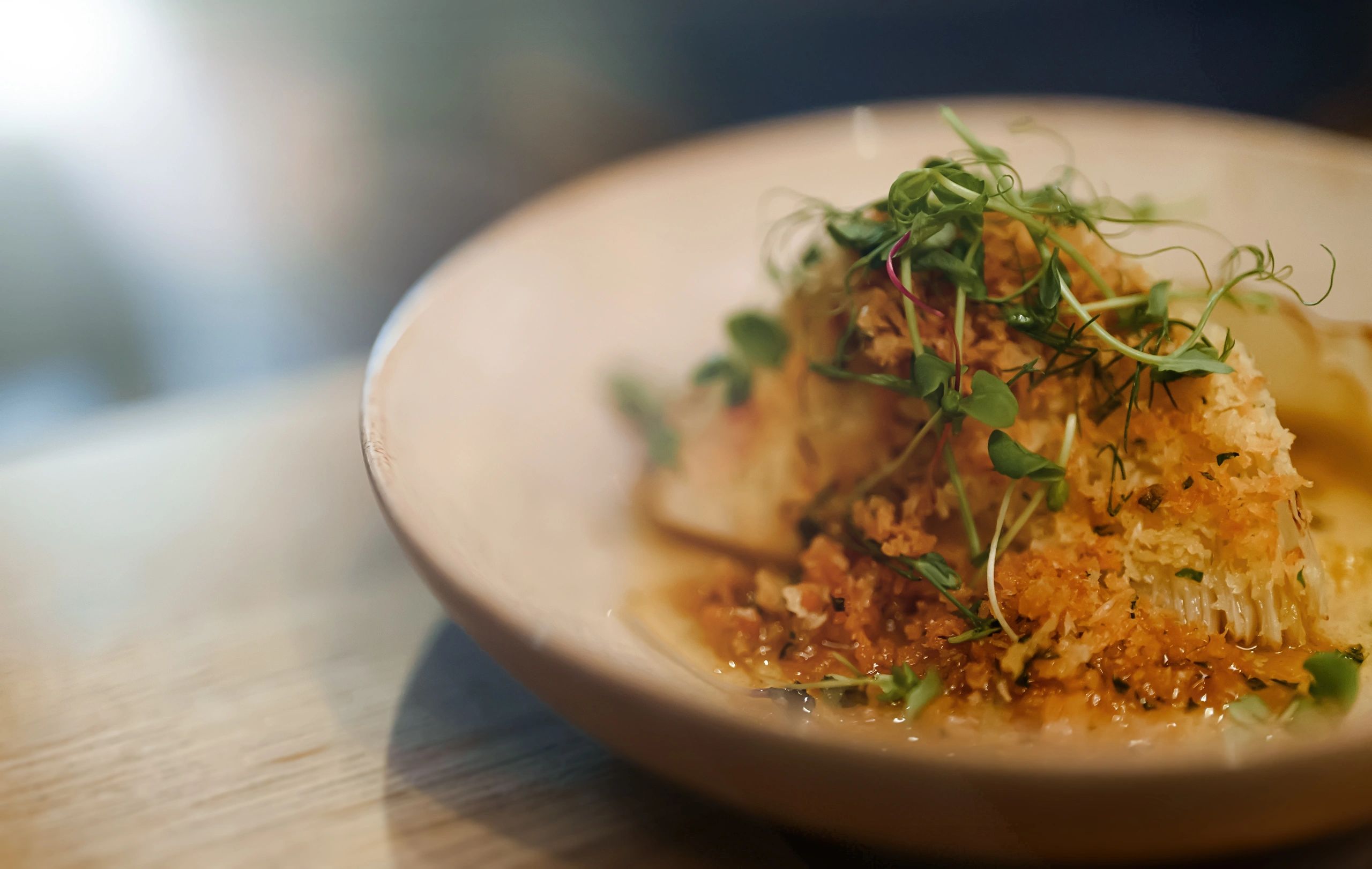ENGLISH MUFFIN | ARUGULA | SHAVED PARM | LEMON OIL | PAN SEARED LOCAL MYCOPLANTOYSTER MUSHROOMS | SUN-DRIED TOMATO HOLLINDAISE | LEMON ZEST