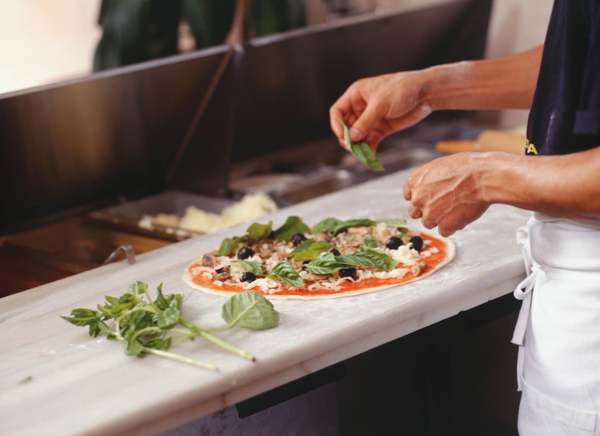 House made creamy garlic sauce combined with mozzarella and pecorino Romano spread on pizza dough, baked to perfection in wood-fired oven.