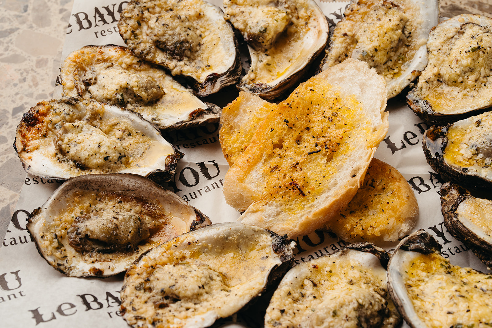 Louisiana oysters, fresh shucked, topped with our Parmesan butter cheese filling and grilled to perfection