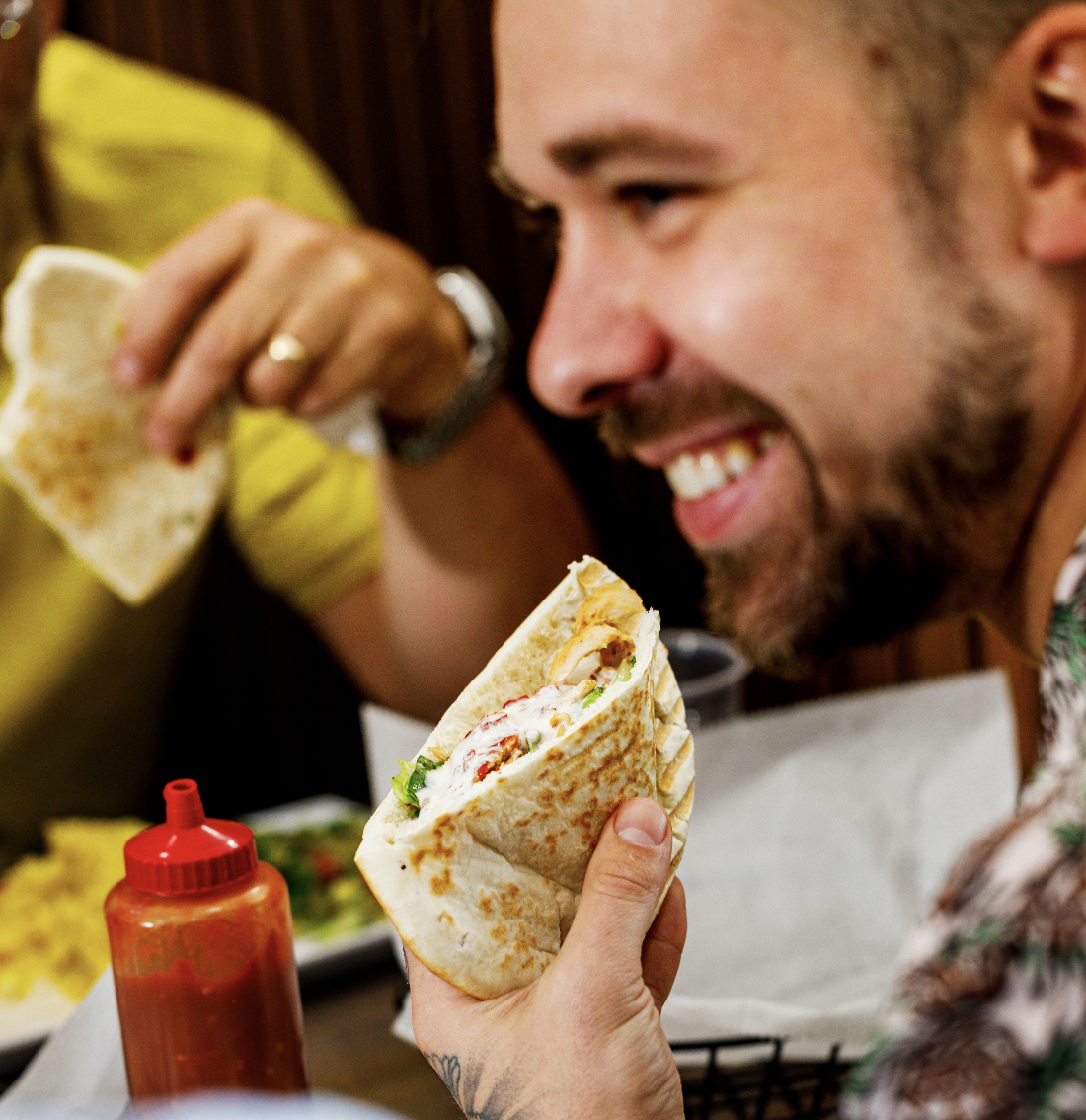 Falafel with arabic salad, pickles and a spread of hummus stuffed in your choice of bread. Make it Vegan –