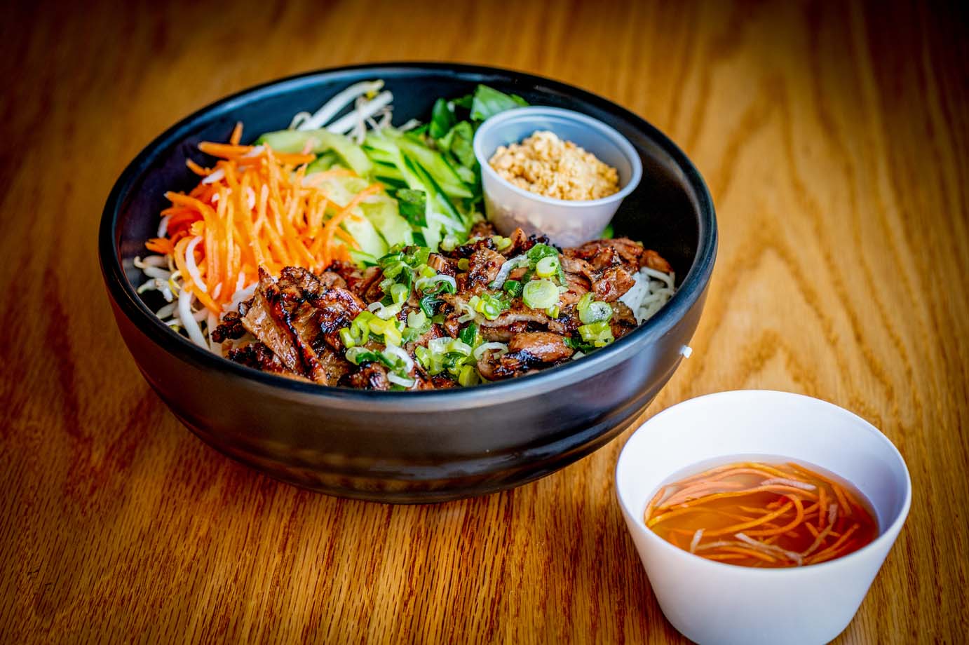 Braised brisket chunk simmered with tendon and carrots in a rich broth of aromatic spices, lemongrass and star anise. Paired with , scallion and cilantro.