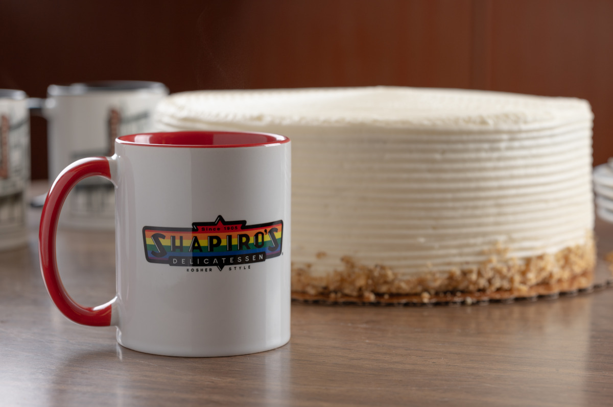 Our delicious, house-made corned beef piled high with two slices of German-Swiss cheese, a thick splat of Russian dressing, and Shapiro's cole slaw in the middle of the meat grilled to a golden brown served with our pickle for the perfect blending of flavors in one sandwich!