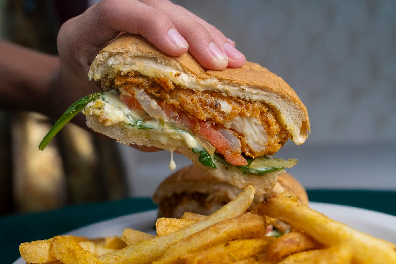Served with spinach leaf, tomato, grilled onions, pickles, Swiss-American cheese with Juke white sauce, and choice of side.
